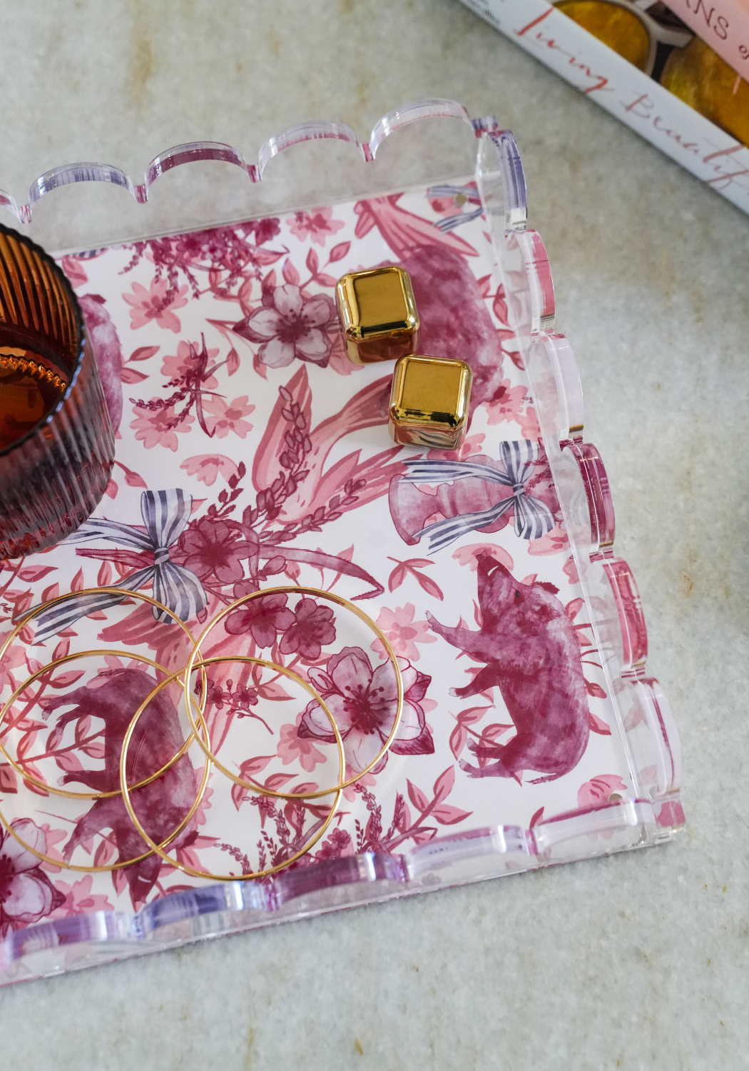 This scalloped acrylic tray is the perfect way to add style to your space! With its adorable scalloped edges and interchangeable inserts, it's both practical and stylish—great for serving snacks, organizing jewelry, or adding a fun touch to your home.